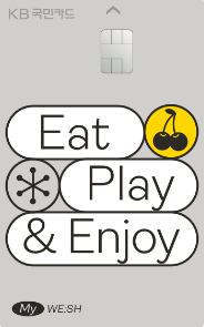 카드 혜택도 알차게 있고 생일 월에는 추가혜택이 있는 것도 상당히 좋았습니다. 신용카드 고민하시는 분들은 KB 국민 My WE:SH카드 추천드립니다.
